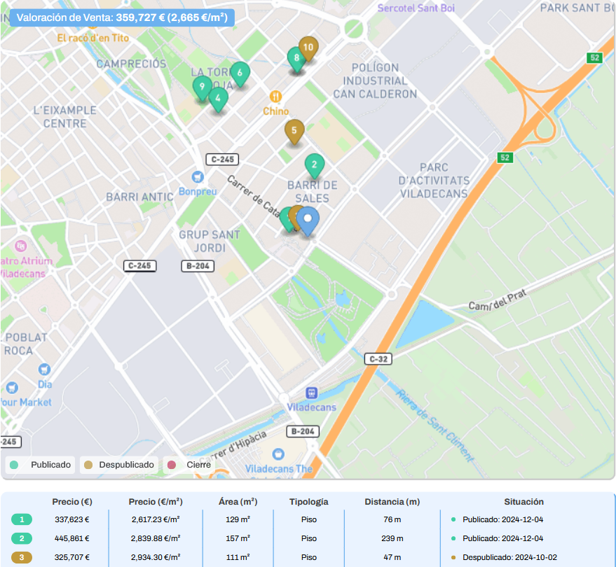 - Comparativa de precios con viviendas similares en tu zona en venta o alquiler.