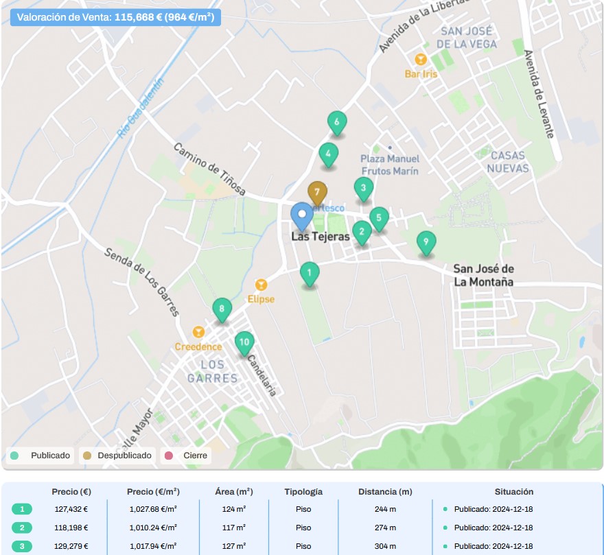 • Comparativa de precios con viviendas similares en tu zona en venta o alquiler.